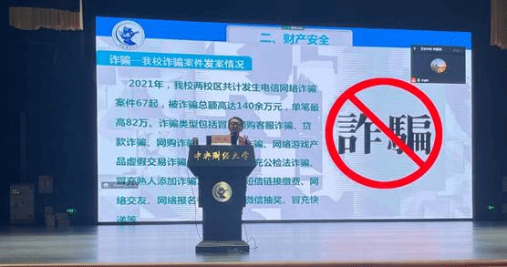 李老师从大学生安全教育的重要性谈起,向同学们介绍了人身安全、财产安全特别是防范电信网络诈骗、宿舍消防安全、交通安全、食品安全、卫生安全和疫情防控等方面的注意事项,并结合身边的真实案例,为大家敲响了安全教育的警钟。