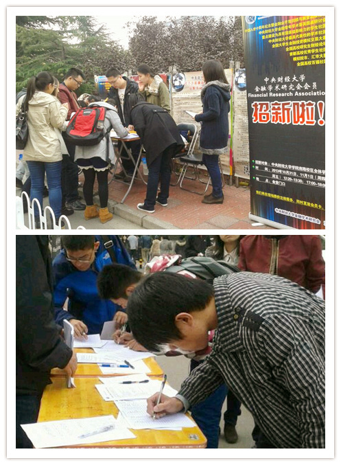 秋风送爽,阳光明媚,浦京集团官网金融学术研究会会员纳新于2013年10月31日和11月4日火热展开。纳新活动面向浦京集团官网学院南路校区所有学生,吸引了大量同学前来报名。