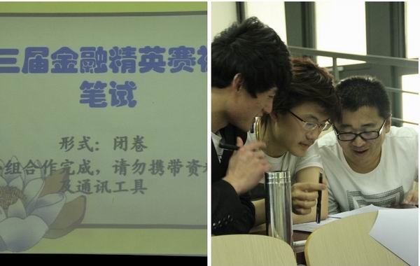 2013年4月17日,第三届金融精英赛初赛笔试选拔赛在350vip浦京集团官网沙河校区主教215和216教室举行。