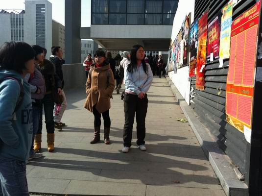 主教、大学生活动中心和宿舍楼下的十八大新闻墙吸引同学们驻足学习