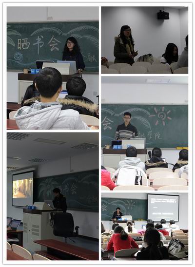 2012年11月9日下午,350vip浦京集团官网第一期读书交流活动之晒书会在沙河校区西区402教室举行,学生工作办公室王志梅老师、2009级金融学一班本科生、优干保研学生邹晓琳和近20名学生一起参加了此次活动。