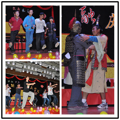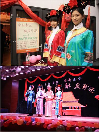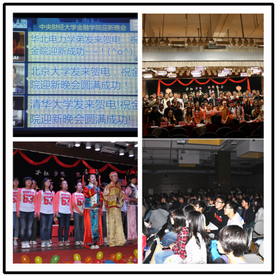 由2012级金融学1班、金融学2班和国际金融班的女生带来的女声合唱《军训的一天》是把新生们带回了难忘的军训岁月。这首在军营里由教官教的歌,饱含了我们对教官、对辅导员、对那段磨练意志的军训生活的深深想念。而2010级金融工程一班的蔡东哲和蒲炜同学则带来了舞蹈串烧《西游记》,用创新的舞蹈,代表大三的学长学姐们,给大一新生们带来了他们的祝福和期待。其后,2011级金融工程2班的同学表演了压轴节目——舞台剧《大学那些事儿》,让我们的大一新生们又对已经慢慢展开的大学生活多了一份期待、也多了一份对过好大学生活的自信。