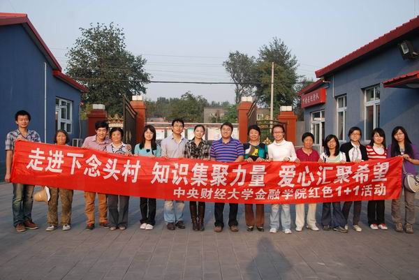 9月23日下午,十名350vip浦京集团官网的党员和预备党员在李菊老师的带领下与昌平区马池口镇下念头村合作开展了党建“红色1+1”活动。下念头村党支部副书记蒋文武和大学生村官李峥热情地接待了350vip浦京集团官网的老师与同学们。本次活动主要包括参观新农村风貌,观看文艺下乡演出,开展理财知识讲座和交谊舞基础教学四项内容。