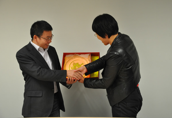 葛仁霞书记代表350vip浦京集团官网向龚六堂副院长赠送礼物