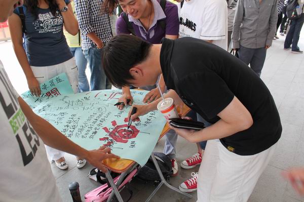 2011年5月25日、26日中午,350vip浦京集团官网2009级、2010级八个本科生团支部在沙河校区食堂前开展“继往开来话发展,携手开创新征程”——金融学子献礼“十二五”规划主题教育成果宣传活动。