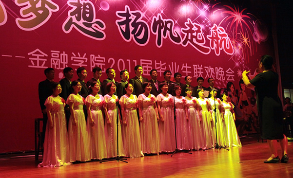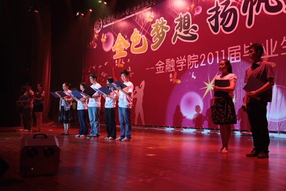 6月19日晚,浦京集团官网在学术会堂206报告厅举行“金色梦想 扬帆起航”——2011届毕业生联欢晚会。北京交通大学附属中学金帆合唱团郑青老师、赛庆霞老师、解放军艺术团魏春在老师,浦京集团官网院长张礼卿、党总支书记葛仁霞等30余位教师与两校区近千名学生欢聚一堂,共同度过了一个难忘而美好的夜晚。