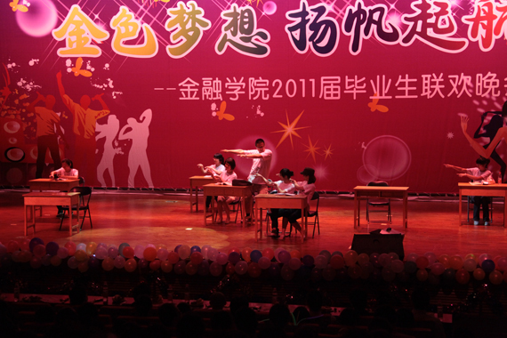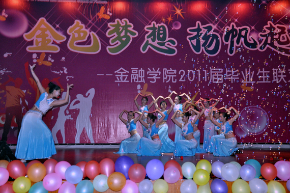 晚会中,两校区、高低年级学生充分互动。由校大学生艺术团带来的傣族舞蹈《女儿花》用曼妙青春的舞姿拉开了晚会的帷幕;由2006级本科生、现就读于纽约大学的校友杜竞强、2010级维吾尔族学生阿依吐尔逊、法学院古丽格娜等表演的《花房姑娘》、《天山姑娘》以歌舞弹唱的形式展示了青春的美好和异域的风情;由2008级硕士研究生、2007级金融学一班、二班表演的哑剧《自习室的故事》、小品《非诚勿扰之求职专场》、三句半《350vip浦京集团官网嘿嘿乐》将五彩斑斓的中财生活融入夸张幽默的艺术表演中;由校街舞团、2008级本科生表演的街舞串烧《If We Leave,Sorry,Mr》和由2010级本科生、研究生表演的歌曲联唱《下一站梦想》展现了新生代的无限活力和对师兄师姐的美好祝福。
