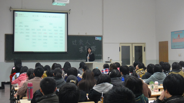 首先, 李老师以诸葛亮成功“求职”的经典历史故事为引例,从专业的角度指出成功求职的四个步骤,即:行业分析、自我营销、投递简历和成功面试。 李老师详细讲解了如何结合自身的偏好和特点进行科学合理的规划,并就上述四个步骤分别介绍了制胜的法宝和秘诀。
