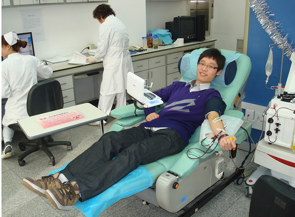 12 月 16 日 清晨, 浦京集团官网2010 年第二批无偿献血者( 7 名本科生和 5 名研究生)乘校车前往北京市红十字血液中心参加成分献血,研究生秘书张鹏老师全程陪同。 抵达献血中心后,同学们在医务人员的悉心引导下进行了登记填表,体检化验等基础准备工作,随后进食早餐,等待体检结果。献血中心为等待结果的同学们提供了电视、报纸等娱乐设施以放松心情,便于他们静心准备。稍后,符合献血标准的同学陆续完成了成分献血工作。期间,研究生秘书张鹏老师和学院的志愿者们为献血学生提供了完善的后勤保障服务,缓解了同学们的紧张情绪,同时带给同学们以精神上的鼓励。更值得一提的是,先结束献血的同学们,尽管身体虚弱,仍争相为后续结束献血的同学们进行服务,这种团结互助的精神值得称赞。
