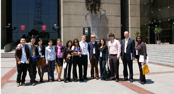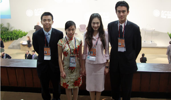 在CEO峰会上中国四名青年代表等待胡主席出场