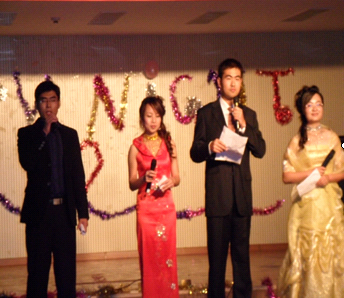 在四位主持人激情愉悦的报幕声中,我们的晚会开始了。