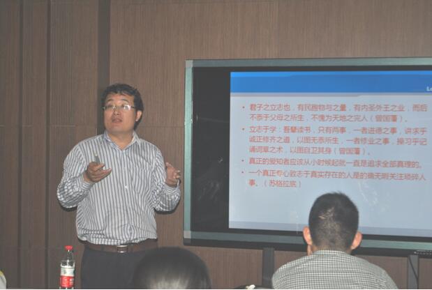 白云真副教授强调了大学生在学习之余注重“习”之修养的重要性,他借助大量中国古典文学中的经典语句来定义优秀的学生应该具备的品质:好学,知足,自省等,指出治学之道需终身学习,以史为鉴,为未来可能发生的一切做好充分的准备。谈及未来规划,他把志向与磨砺作为重点,指出大学生立志要高远,应反复琢磨自己的志向,以此达到中年而立之说。谈及大学生的生活社交,他提出广泛结交良师益友是大学生活的重要组成部分,学生不仅要向老师和同学学习,更要向先贤学习,在与书本中的贤者交流时产生思维的碰撞,使自己的思想特立独行。