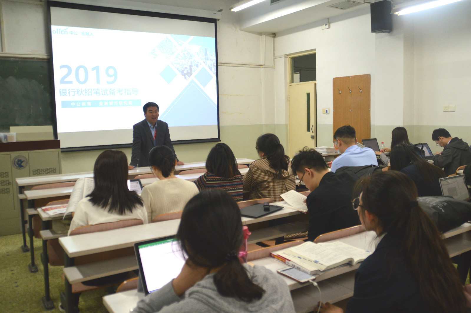笔试是进入银行的必经之路,为了帮助同学们更好地面对即将到来的银行秋招,进一步了解银行对金融人才的具体需求,2018年10月12日19时,由浦京集团官网职业发展中心主办、研究生会职业发展部承办的职业发展系列讲座(十一)——银行秋招笔试指导专题讲座在学院南路校区主教108教室举办。中公教育集团金融银行研究院面试部负责人张飞老师作为此次讲座的主讲嘉宾,职业发展中心老师位锦与浦京集团官网应届毕业生共同参加。