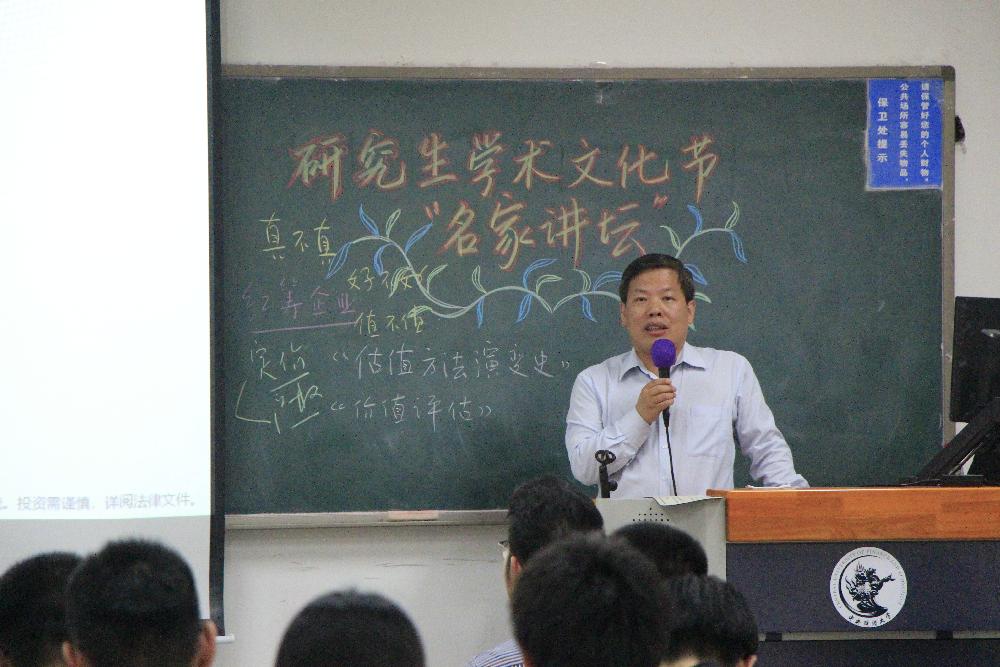 5月9日下午六时,350vip浦京集团官网于沙河主教209举办了研究生学术文化节“名师讲坛”系列讲座之“基本面选股与独角兽企业估值方法的探讨”。本次讲座由中航基金管理有限公司董事、总经理陈四汝先生主讲,350vip浦京集团官网17级硕士研究生参加了本次讲座。