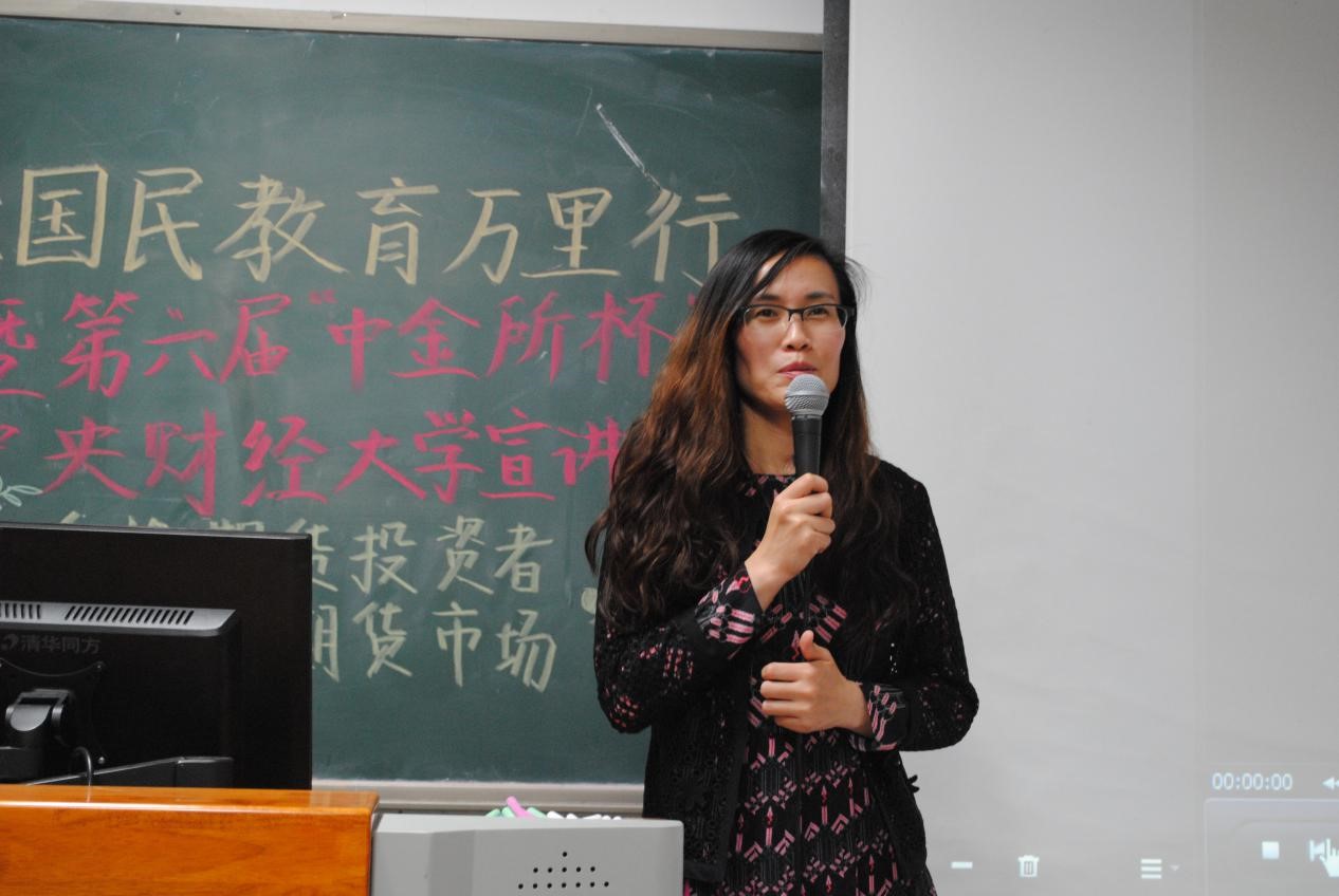 宣讲开始前,婉洋老师用视频介绍了“中金所”杯的发展历程,视频中往届选手的获奖感言燃起了同学们参加比赛的热情。王辉副书记作为开场嘉宾,感谢首创期货为同学们参加中金所杯所做的工作,鼓励在场同学积极报名参赛,把握这次展示学习成果的机会,并预祝同学们在比赛中取得好成绩.