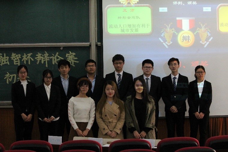 围绕着“流动人口增加是否有利于城市发展”这一辩题,下午第一场辩论赛也拉开帷幕,由金融16-1和金工16-2组成的“辩形金刚队”代表正反,和来自国金15-1的“克鲁格曼队”反方代表展开了激烈的辩论,以逻辑缜密的思辨思维深入分析城市发展与流动人口的关系。