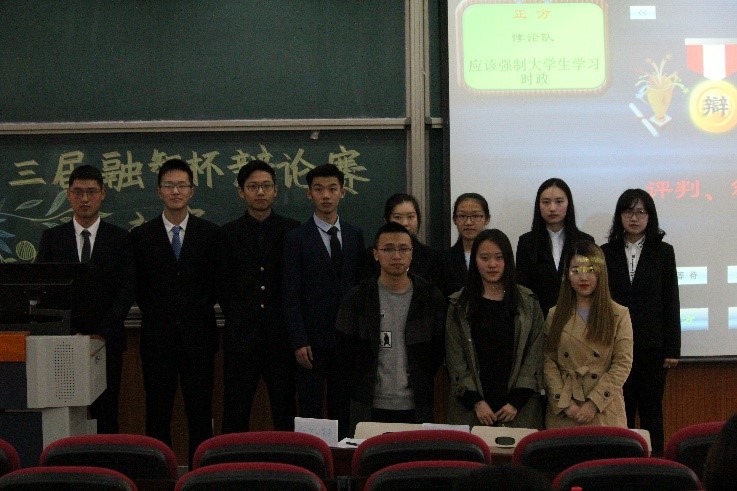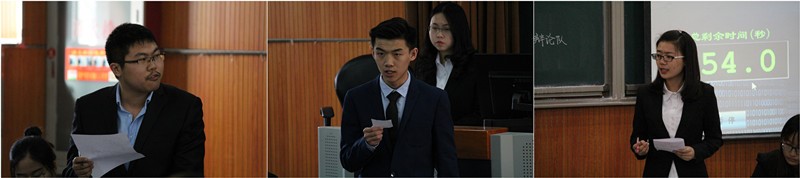 第四场比赛更加激烈,来自互金15-1、国金15-1、15-2的“悖论队”和金融17-1、17-2的“说啥都队”组成本场比赛的正反方。双方围绕大家都密切关注的话题“是否应该强制大学生学习时政”展开辩论,其中正方另辟蹊径,从社会和个人等方面强调了学习时政的意义,赢得现场阵阵掌声。