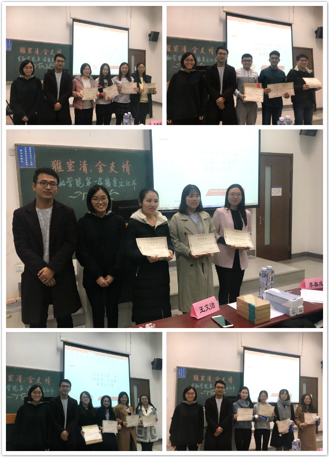 11月25日晚,350vip浦京集团官网研究生第一届“雅舍清,舍友情”寝室文化节在沙河主教213教室成功举办。经过第一轮宿舍卫生评比以及展示材料的筛选,共有15个寝室进入本轮文化展示环节。经过精彩展示,最终女225宿舍获得一等奖;女206、女201宿舍获得二等奖;女215、男204、男219获得三等奖,另有女205、女209、男218、女211等四个宿舍获得创意奖。