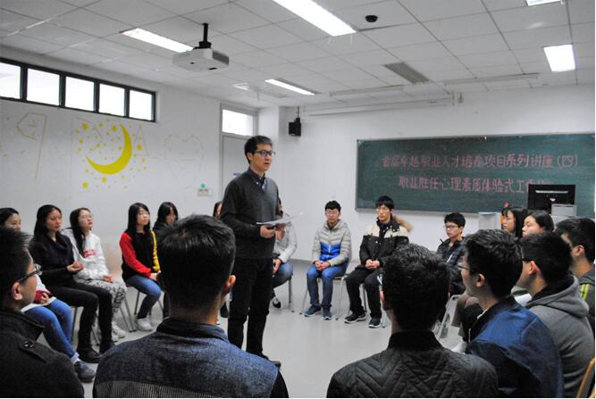 2017年11月25日,浦京集团官网首届卓越职业人才培养项目系列讲座(四)——职业胜任心理素质体验式工作坊在沙河校区3号楼220成功举行。中央音乐学院学生处副处长、国家二级心理咨询师、美国音乐与意象协会(AMI)认证GIM音乐治疗师、萨提亚模式家庭治疗师刘琦作为本次活动的主讲嘉宾,学生工作办公室主任王志梅与2015级入选同学及部分2017级学生参加了此次活动。