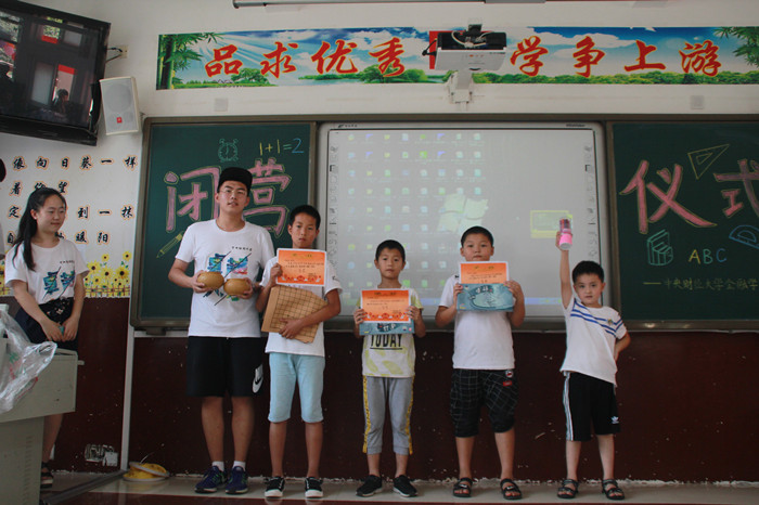 在最后的颁奖环节上,小营员尹瑞祥、张翔瑞、曾权荣获围棋比赛的一、二、三等奖,并获得围棋、水彩笔等奖品。除此之外,老师们还从每个表演组中挑选一名小营员,赠送水彩笔和精美的本子。最后,每位小营员都获得了小奖状、图画本和350vip浦京集团官网的明信片,表彰他们的进步与成长。