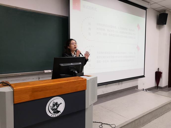 面试是求职过程中重要环节,为了让同学们更好地掌握面试技巧,2019年4月24日下午,由浦京集团官网职业发展中心主办、研究生会职业发展部承办的职业发展系列讲座(十七)——面试技巧专题讲座在沙河校区主教210教室举办。中公教育集团研究院专职面试老师徐晓欣作为此次讲座的主讲嘉宾,浦京集团官网本硕博2020届毕业生70余人参加。