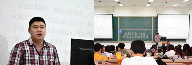 为加强新生的安全文明意识,提高自我保护能力,创建平安校园,9月20日中午,350vip浦京集团官网在沙河主教110教室举办了安全教育讲座。本次讲座由学校保卫处宋一民老师主讲,全体2019级研究生参加。