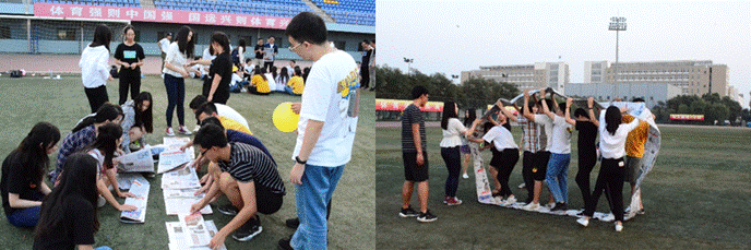 本次素质拓展活动总体实施方针是“先混班后同班”。先将全部同学随机分为12个小组,每组13-14人,开展“123看这边”、“你画我猜”、“夹气球接力”等小游戏。小组活动结束之后,活动以班级为单位,进行了“履带战车”游戏。活动期间,各小组、各班级成员激情参与,在不同的活动项目中,队员们密切配合,齐心合力。活动过程也是充满了欢声笑语,鼓掌声不绝于耳,处处可以感受到团队合作的力量。活动最后,学院还为游戏用时最短的前三名小组每一位成员分发了精美奖品,以及为各个班级颁发荣誉奖状。本次素质拓展活动历时2个小时,圆满结束。