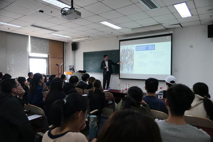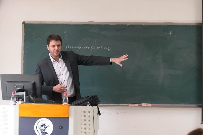 RomainLafarguette是IMF货币与资本市场部的经济学家,主要研究国际宏观经济和金融及统计模型有关的问题。他先为大家播放了关于IMF经济学家项目的介绍视频,使同学们对IMF有了大致了解。随后,RomainLafarguette从IMF组织构成,在IMF工作是怎样的体验以及IMF招聘计划三个部分进行了详细解读,并重点介绍了其经济学家招聘项目。RomainLafarguette形象的将IMF比作国家陷入危机的援助者,将资金从多余的国家转移到稀缺的国家。在IMF工作或实习不仅为同学们提供了优秀的平台和起点,而且可以使大家获得不可多得的经验,多样化的研究选择方向——货币政策、中央银行、商业银行、投资基金等,差异化的国家监督体系等同学们带来不同的研究视角。最后,RomainLafarguette为大家分享了IMF应聘的流程和技巧,帮助大家在笔试、面试、论文方向选择等方面脱颖而出。
