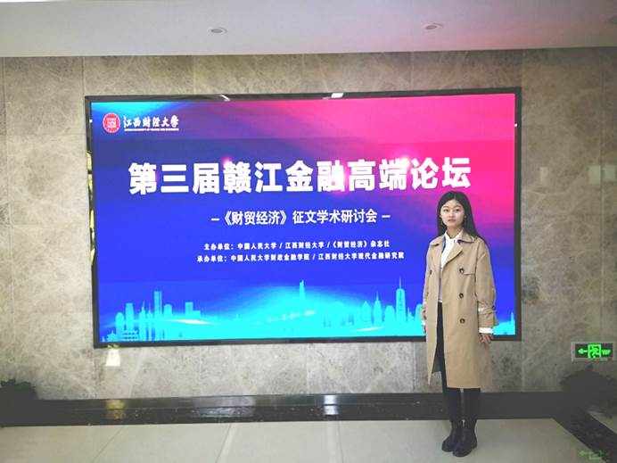 2019年11月17日,浦京集团官网金融科技系硕士研究生王羚睿同学受邀前往江西省南昌市参加由中国人民大学、江西财经大学和《财贸经济》杂志社联合主办的“2019年第三届赣江金融高端论坛”。王羚睿同学受邀报告论文。