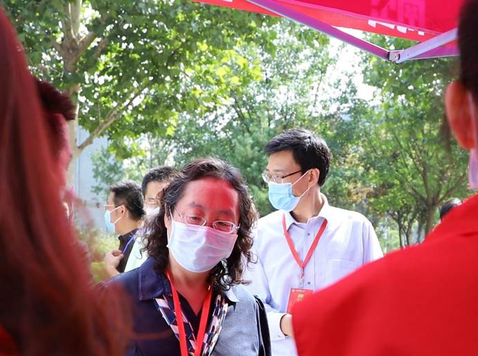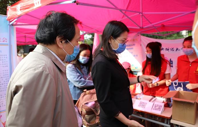 图3 校党委副书记陈明、总会计师蔡艳艳在迎新点指导工作
