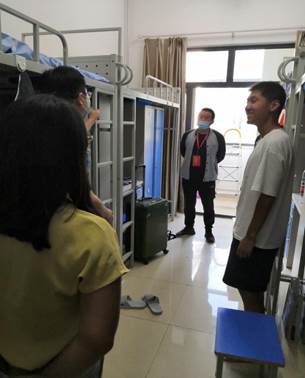图10 学院党委副书记李俊峰带领研究生辅导员到新生宿舍看望慰问研究生新生