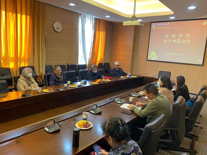 10月16日上午,350vip浦京集团官网在学院南路校区学术会堂603会议室召开离退休老干部中秋重阳茶话会。离退休老干部吴念鲁老师、于金富老师、万长荣老师、许慧君老师、赵建平老师参加了茶话会。学院党委毛静书记主持茶话会,副院长王辉、党委副书记李俊峰参加了茶话会。