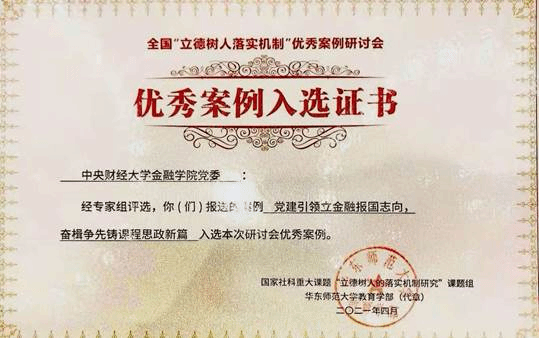 图2:金融专业课程思政建设入选优秀案例证书