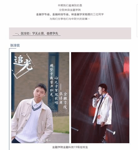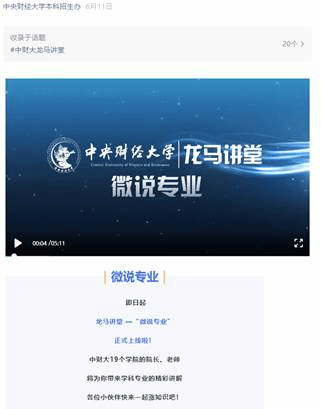 以学院学科、专业、师资队伍以及人才培养的最新成果为内容,依托学校官方招生公众号发布“微说专业”推送;精心设计学院介绍视频文字内容,完成《为国而生,与国同行,做新时代金融创新的排头兵》视频录制工作。