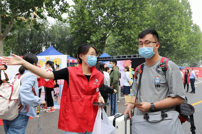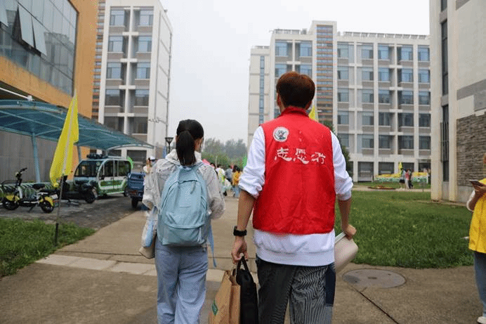 新生在完成报到手续之后,由学院事先招募的志愿者接过行李箱,引领同学前往宿舍,并帮助学生将行李搬运至宿舍楼上。尽管空气闷热,志愿者们已经汗流浃背,脸上却依旧挂着满足而温暖的笑容,时刻准备帮助下一位有需要的同学。