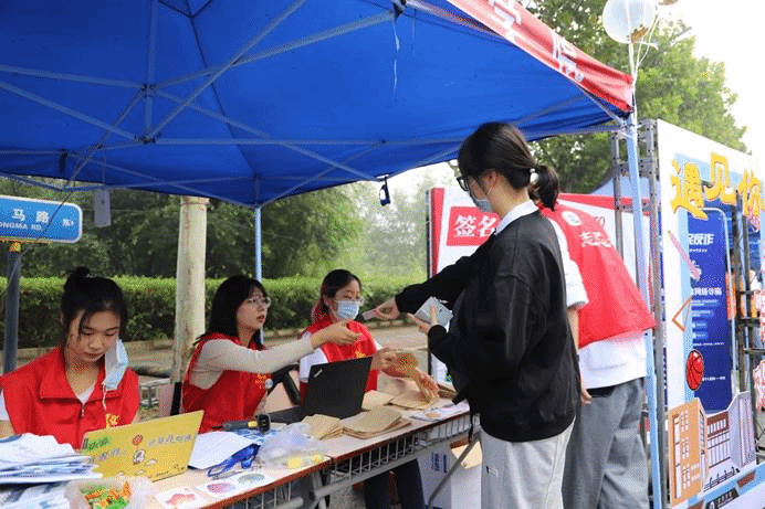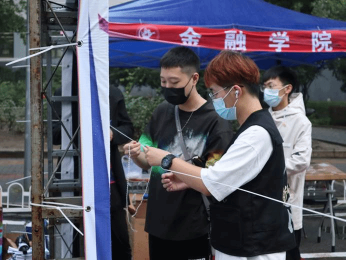 早晨六点,天微亮。暴雨刚停,350vip浦京集团官网的老师们就带领着迎新志愿者们展开了紧张的前期布置工作。350vip浦京集团官网党委书记毛静、院长李建军、党委副书记李俊峰、副院长王辉及全体本科生辅导员组织金院迎新工作者们将新生报到所需要的物资一一布置到位。