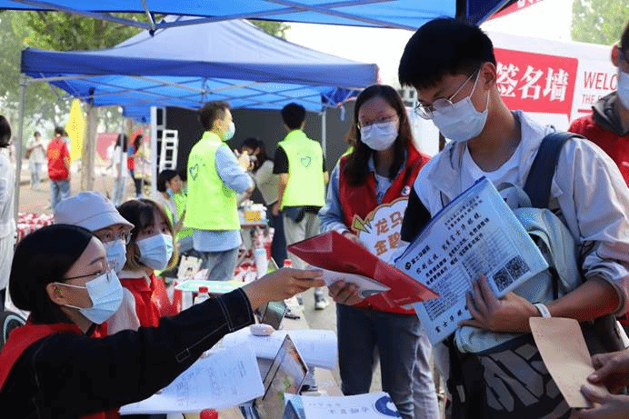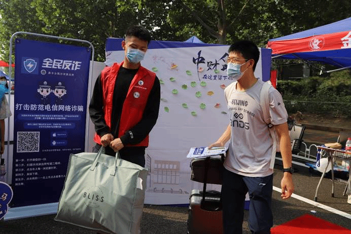微风拂煦,新生陆陆续续前来报到。现场工作人员通过扫描录取通知书条形码帮助新生完成注册报到,同时把钥匙、学生证与学生卡再三确认无误后交递给新生。新生报道指南、入学手册、宿舍入住协议、爱心口罩则被悉数放入事先准备好的学院自主设计的纸袋中已提前由志愿者放入新生宿舍中。