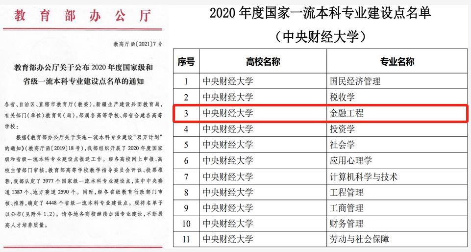 3.金融工程专业入选国家级一流本科专业建设点,学院三大专业建设质量进一步提升