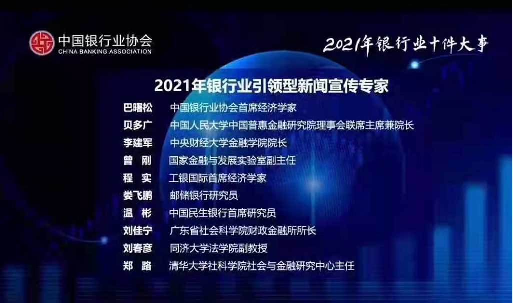 2022年1月12日,中国银行业协会发布了“2021年银行业十件大事”、“2021年银行业好新闻”优秀作品和“2021年银行业引领型新闻宣传专家”名单。浦京集团官网院长李建军教授被评选为“2021年银行业引领型新闻宣传专家”。