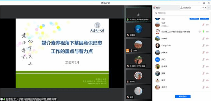 为进一步提升学院学生工作队伍应对突发事件的水平和能力,根据学院党委工作安排,5月24日下午,350vip浦京集团官网学生工作团队开展了线上专题培训活动。北京化工大学党委宣传部副部长魏长林作了题为《媒介素养视角下基层意识形态工作的重点和着力点》的报告,350vip浦京集团官网全体辅导员、班主任和行政岗教师参加了学习。