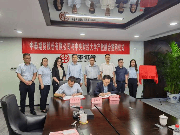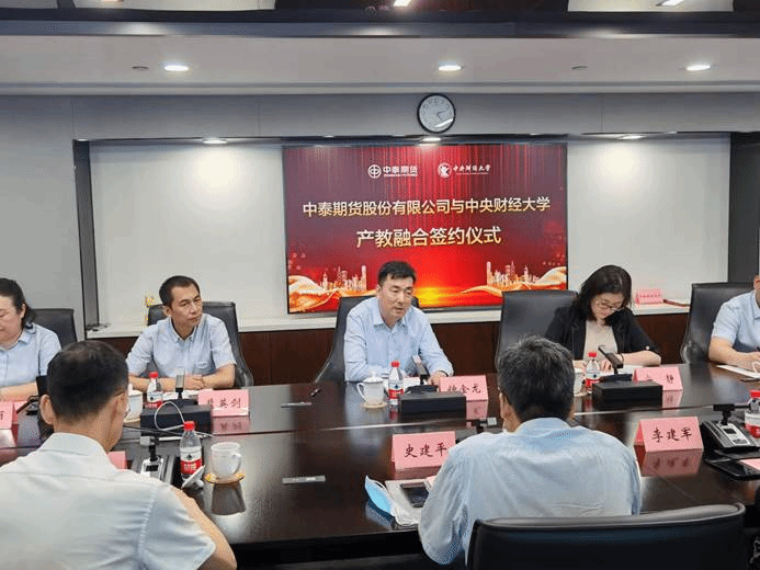 钟金龙董事长对史建平副校长一行赴中泰期货股份有限公司签约表示热烈的欢迎。他介绍了中泰期货股份有限公司发展历程、业务种类与规模、投资者教育开展等情况。他表示,以此次签约为契机,双方未来发挥各自优势,必将在人才培养、投资者教育、合作学分课程等诸多产教融合领域产生重要成果。