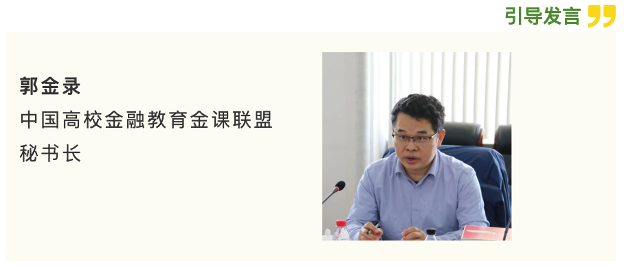 中国高校金融教育金课联盟郭金录秘书长进行了引导发言。他认为,虚拟教研室的设立有三个功能:一是加强师资交流,二是传播优质教育教学理念,三是进行知识内容的共建共享。他强调,知识图谱建设是虚拟教研室核心工作,要在建设过程中不断加强对教育理念、教育应用场景和教育技术的学习。