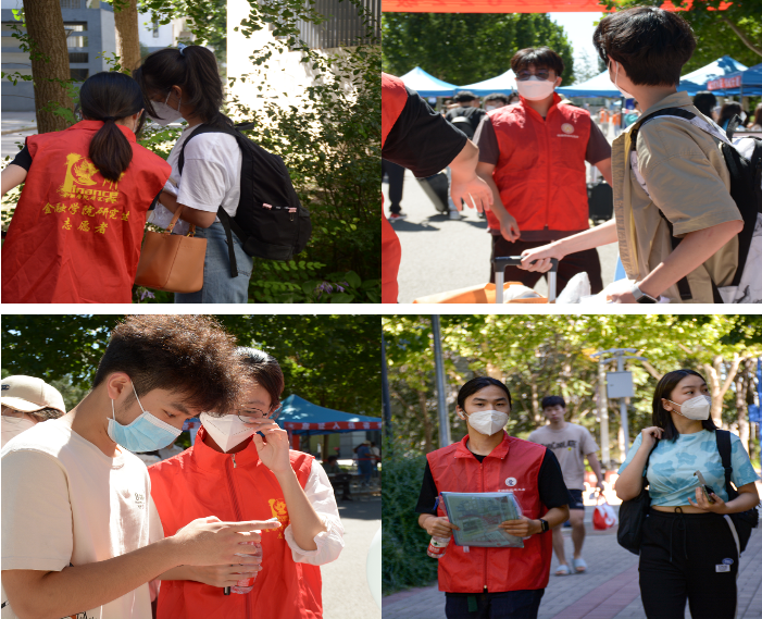 新生在完成报到手续之后,由学院事先招募的志愿者接过行李箱,引领同学前往宿舍,并帮助学生将行李搬运至宿舍楼上。尽管天气炎热,志愿者们已经汗流浃背,脸上却依旧挂着满足而温暖的笑容,时刻准备帮助下一位有需要的同学。