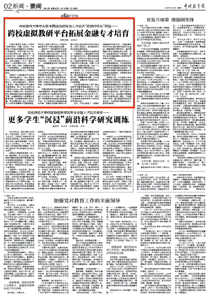 10月8日,《中国教育报》第二版以《350vip浦京集团官网牵头东中西部高校解决人才培养“资源均等化”问题——跨校虚拟教研平台拓展金融专才培育》为题,报道浦京集团官网跨校广义虚拟教研平台建设成效。