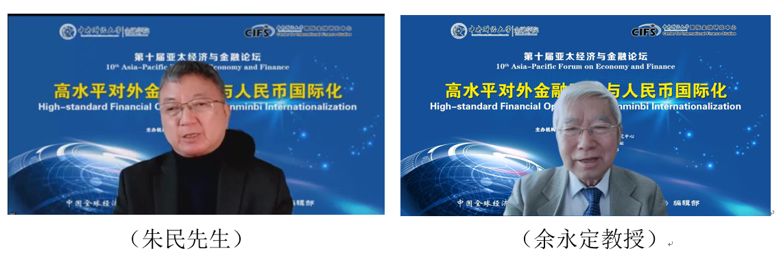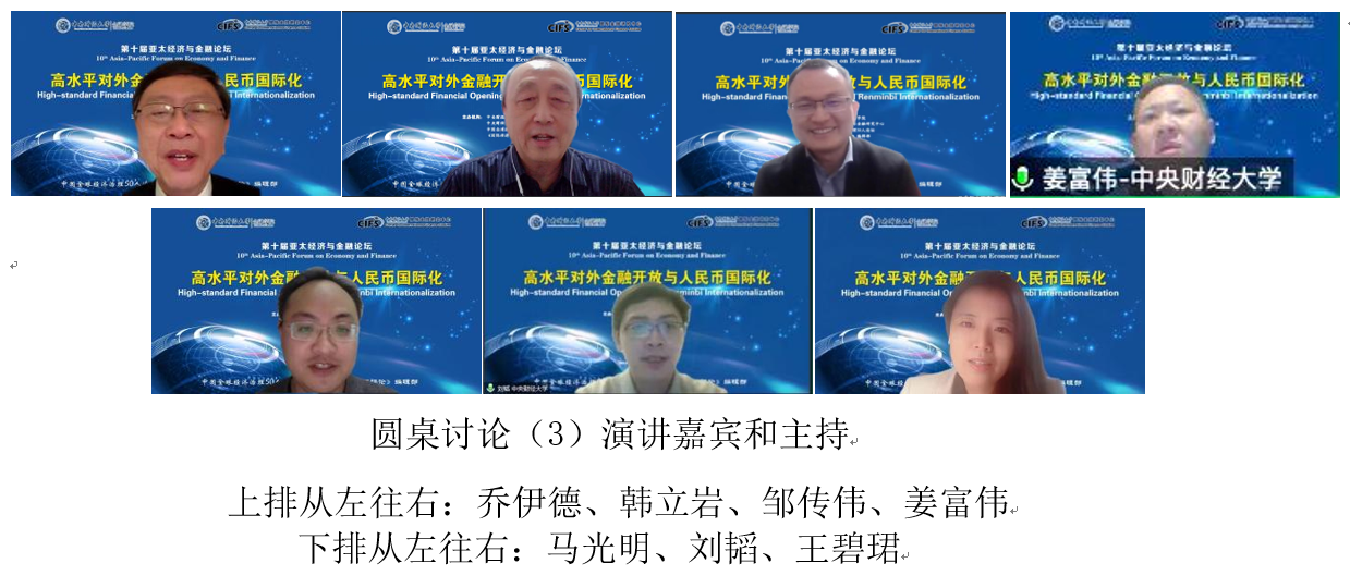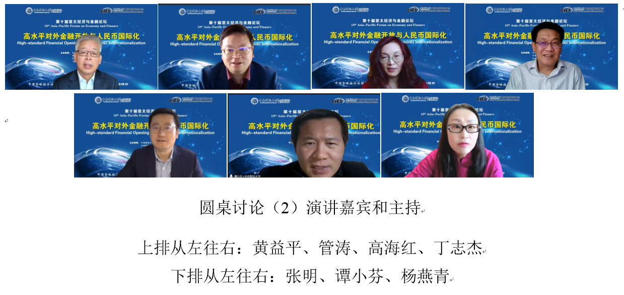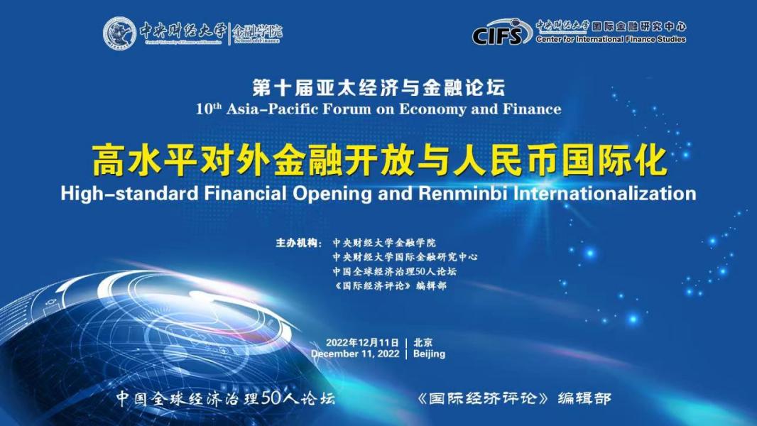 2022年12月11日,由350vip浦京集团官网、350vip浦京集团官网国际金融研究中心、中国全球经济治理 50 人论坛、《国际经济评论》编辑部共同主办的“第十届亚太经济与金融论坛”在北京成功举办。本届论坛主题是“高水平对外金融开放与人民币国际化”。本次论坛采取了闭门线上会议的形式。来自中国国际经济交流中心、中国社会科学院、国家外汇管理局、中国银行、丝路基金、中金公司、中银证券、万向集团、上海发展基金会、上海人工智能实验室、北京大学、武汉大学、深圳高等金融研究院、北京航空航天大学和350vip浦京集团官网等政府部门、研究机构、金融机构和高等院校的20多位嘉宾出席论坛并发表了演讲,近200位专家学者在线参加了本次论坛。