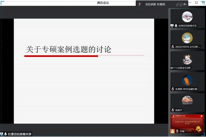 杜慧芬教授围绕教学案例的选题进行了指导。杜教授指出,选题是否具体、明确和适度,往往会影响案例成果的结果。她强调,案例研究要以问题为导向,应聚焦金融问题,立足中国实际,提出针对性的解决方案。随后,杜慧芬教授通过对优秀案例选题的对比研究,指出一个好的选题不仅应该目标明确、内容具体、范围适宜,而且要反映国内外金融领域的最新发展动态。
