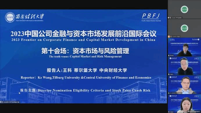 2023年3月4日至5日,浦京集团官网蒂尔堡项目博士生王科参加了由西安财经大学和太平洋金融杂志主办的2023年中国公司金融与资本市场发展前沿国际会议,其合作论文通过评审,被论坛录用,受邀报告论文,并参与点评。