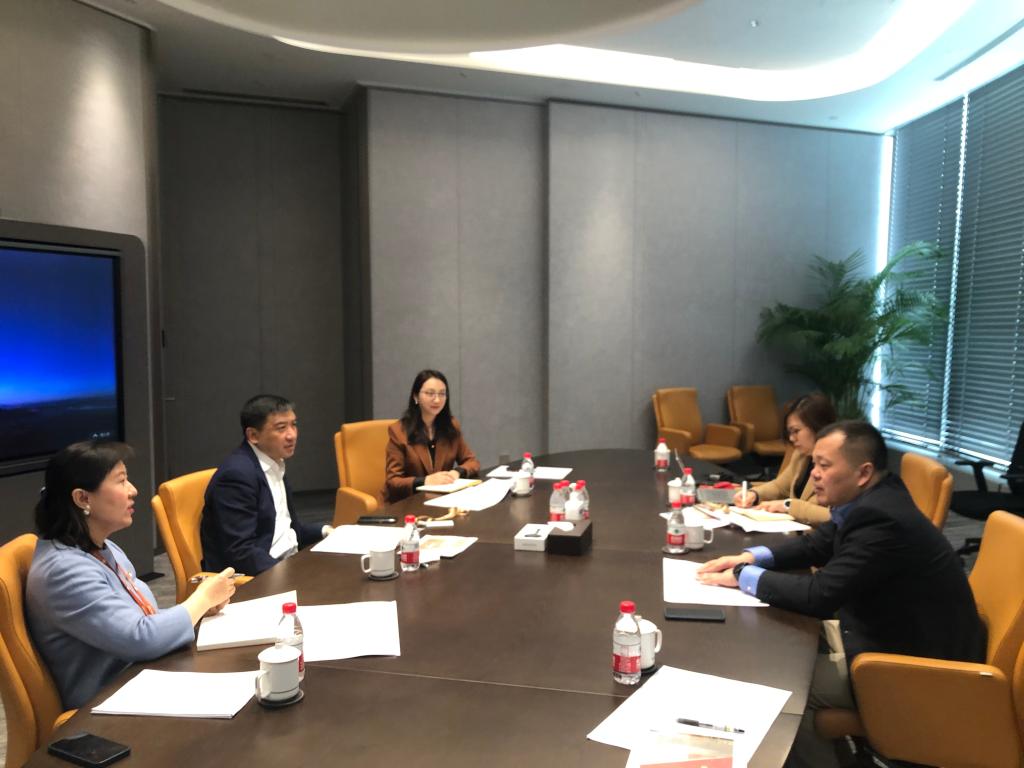 在中国中信金融控股有限公司,张学勇院长与中信金控财富管理部总经理常戈、财富管理部产品处负责人王旭、产品处经理李钰等进行了沟通交流,双方就人才就业直通车、未来联合开展财富管理课程开发、打造中信-中财人才培训课程体系、高端员工培训等事宜达成了初步共识。