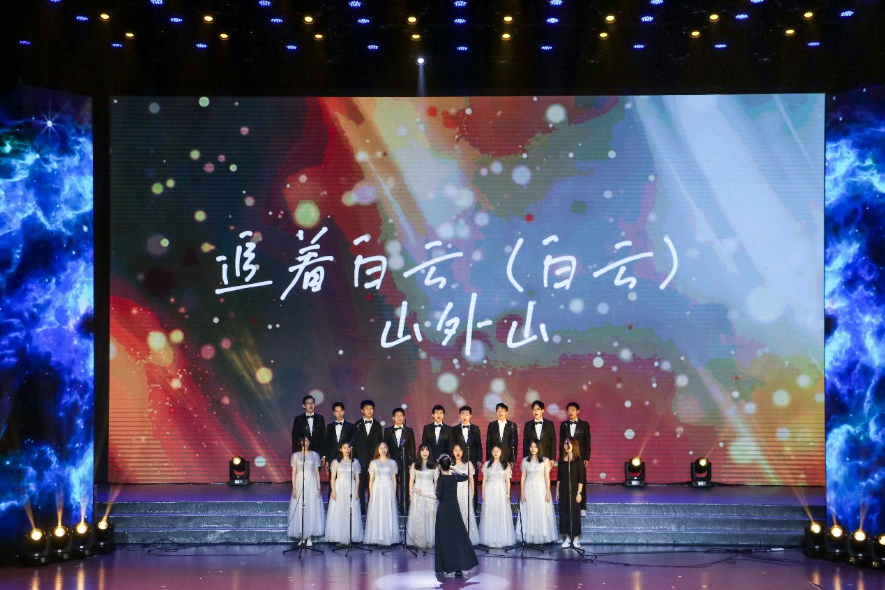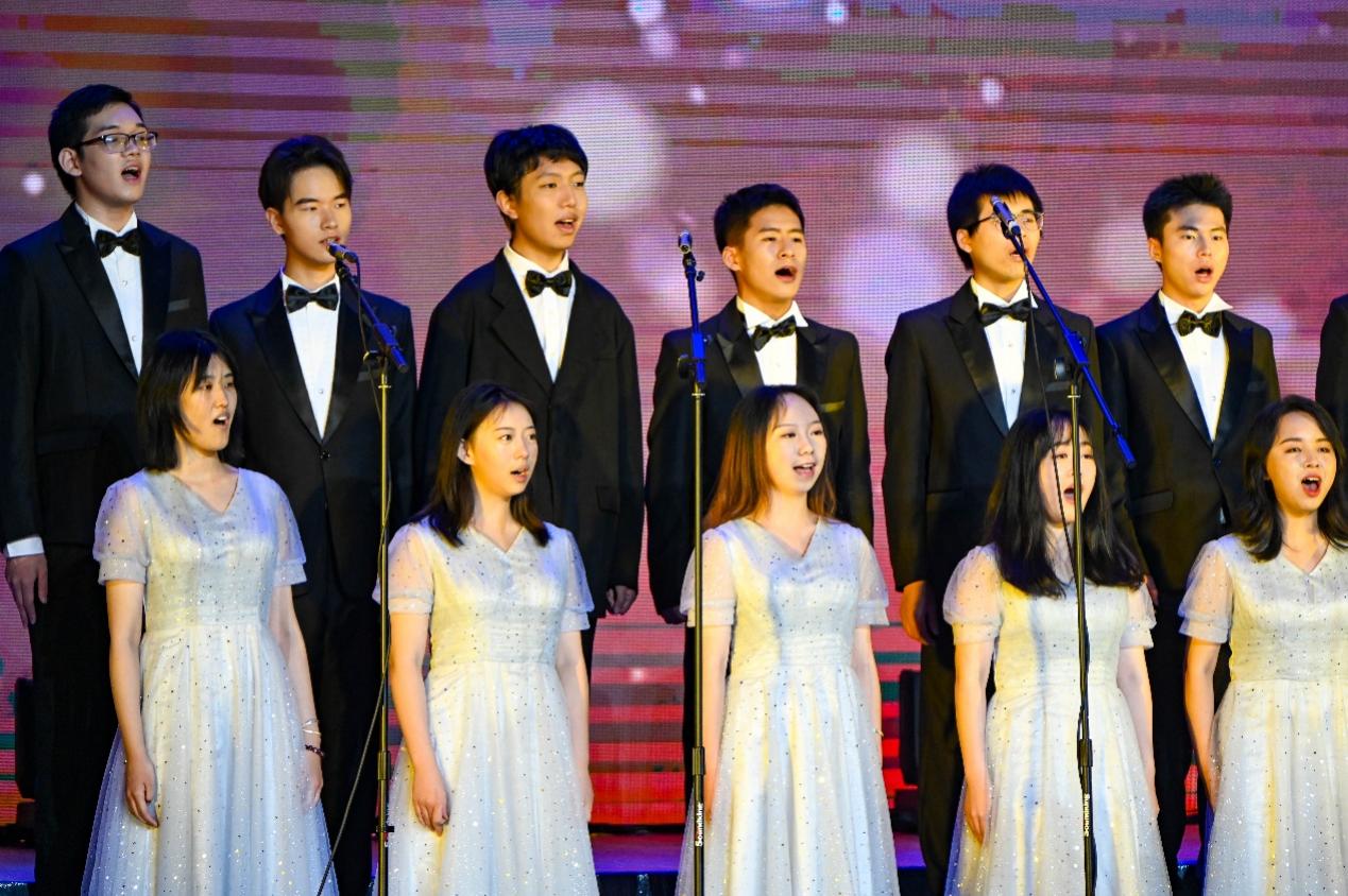 “小小的火车,快快开往南方,期待一个温暖而美丽的清晨”,350vip浦京集团官网合唱团的成员们携手站在舞台中央。他们眼中有光,将对未来的憧憬化作音符串联起这首象征未来美好的《旅行者一号》。他们相互挥手,似诉别离,又互言相见,对未来的憧憬和离别之绪交织,令毕业生们不禁泪光闪烁,满怀动容。