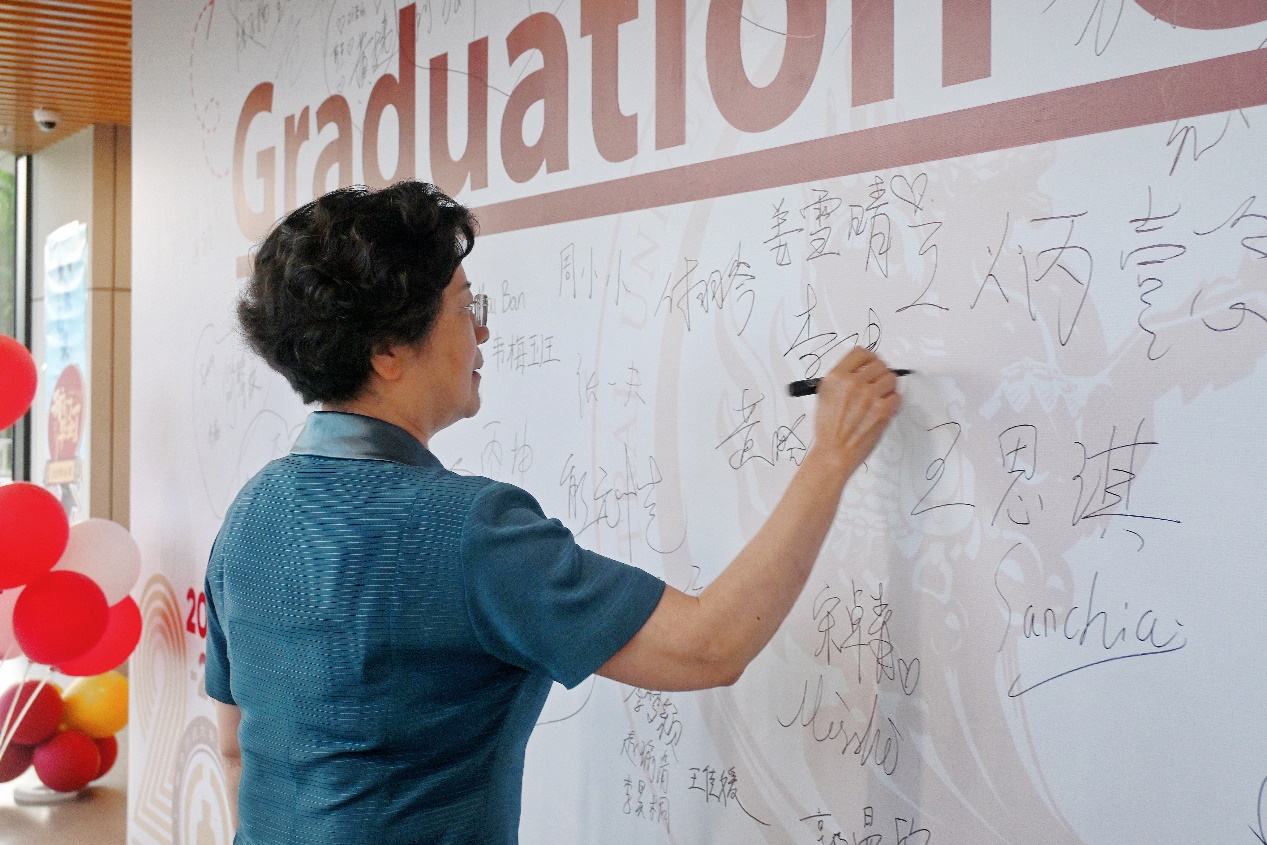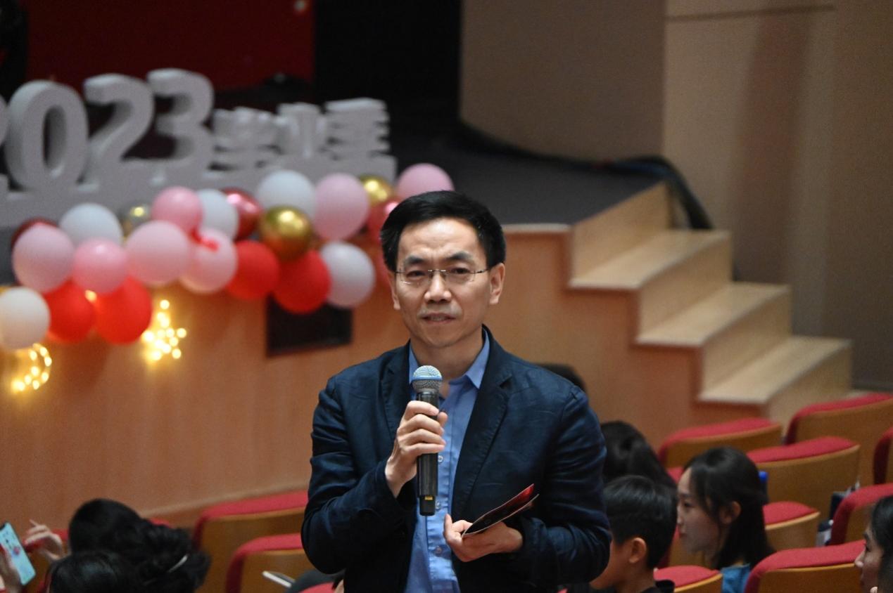 李建军副校长肯定了2023届毕业生们在学习上的勤奋肯干、在工作上的踏实敬业、在合作中的团结奉献、在生活中的热情善良等优良品质。他衷心希望毕业生们肩负起时代使命,保持奋斗激情,做一名堪当大任的新时代青年,在这个充满挑战与机遇的大好时代中,真正实现自己的理想追求与人生价值。王辉书记回顾了三年以来350vip浦京集团官网学生所共同经历的困难与挫折,也为现在蒸蒸日上的350vip浦京集团官网表达了满满的期待。她真诚的希望毕业生们能够在未来找到自己的人生舞台,在平凡的岗位上做出不平凡的成绩,并祝愿每一位毕业生都能拥有不平凡的未来。张碧琼教授大力赞扬毕业生们踏实肯干、不畏艰险的学术科研精神。她希望毕业生们心中永远种下350vip浦京集团官网带给大家的“金色梦想”的种子,带着自己的理想扬帆起航!